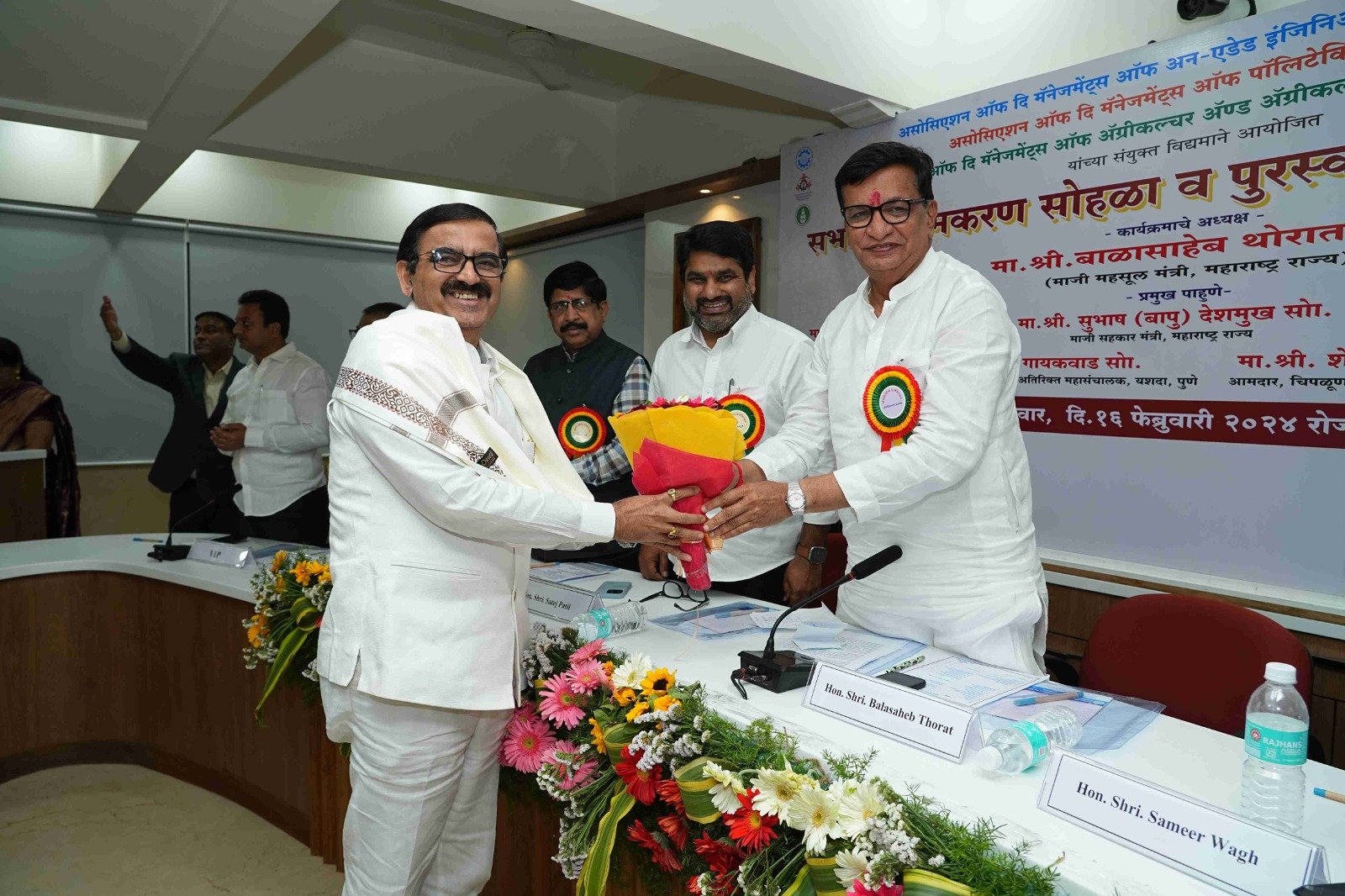 Felicitation of the former revenue minister of Maharashtra state Hon. Mr. Balasaheb Thorat by the president of the association Hon. Mr. Sameer Balasaheb Wagh