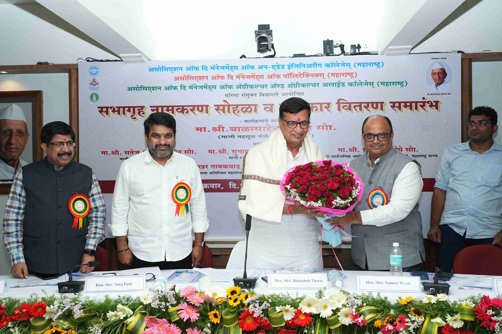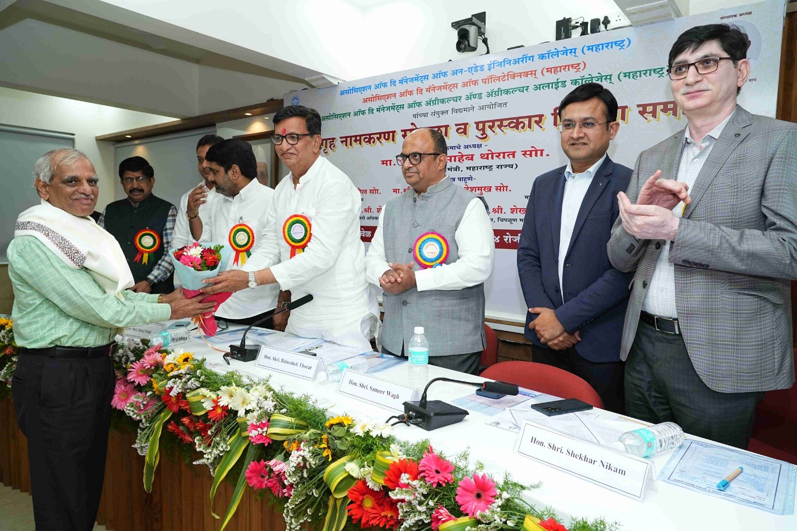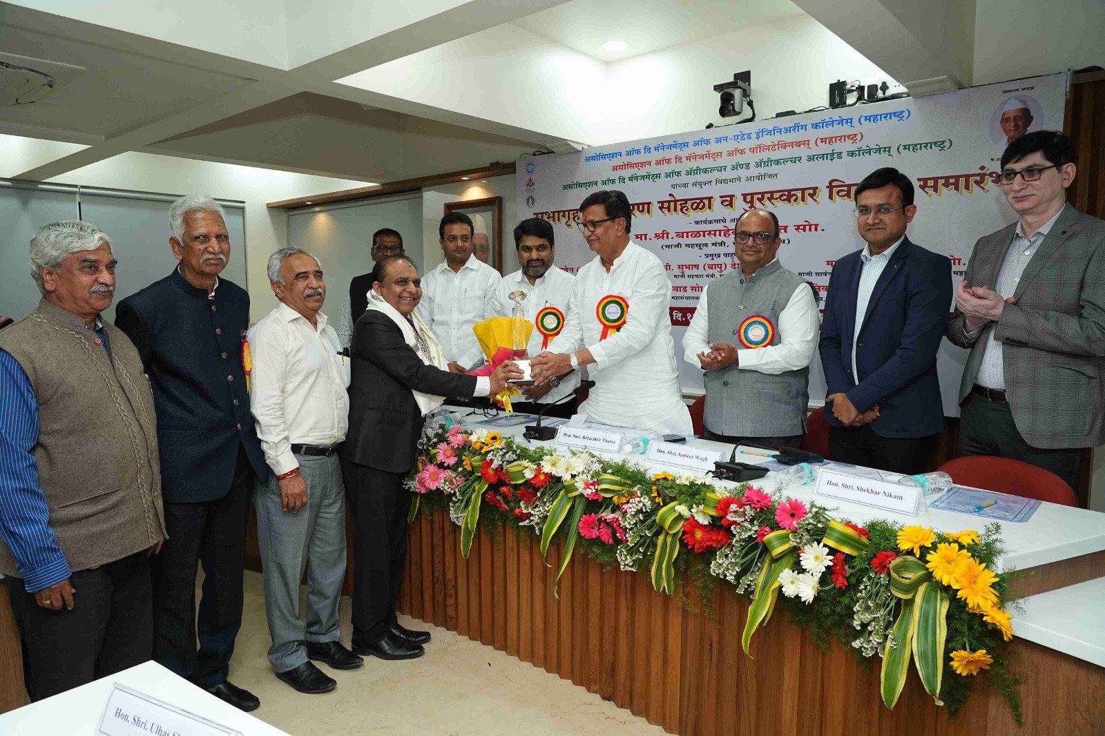 On behalf of the Engineering Association, 'Hon. Balasaheb Wagh (Bhau) Memorial Life Time Achievement Award' was awarded to Trustees of Jaywant Shikshan Prasarak Mandal, Pune Hon. Dr. Pramod Pandurang Vitkar by the auspicious hands of former revenue minister of Maharashtra state Hon. Mr. Balasaheb Thorat in presence of the former Minister of State for Home Affairs of Maharashtra State Hon. Mr. Satej (Bunty) Patil, President of the Association. Mr. Sameer Balasaheb Wagh and other dignitaries