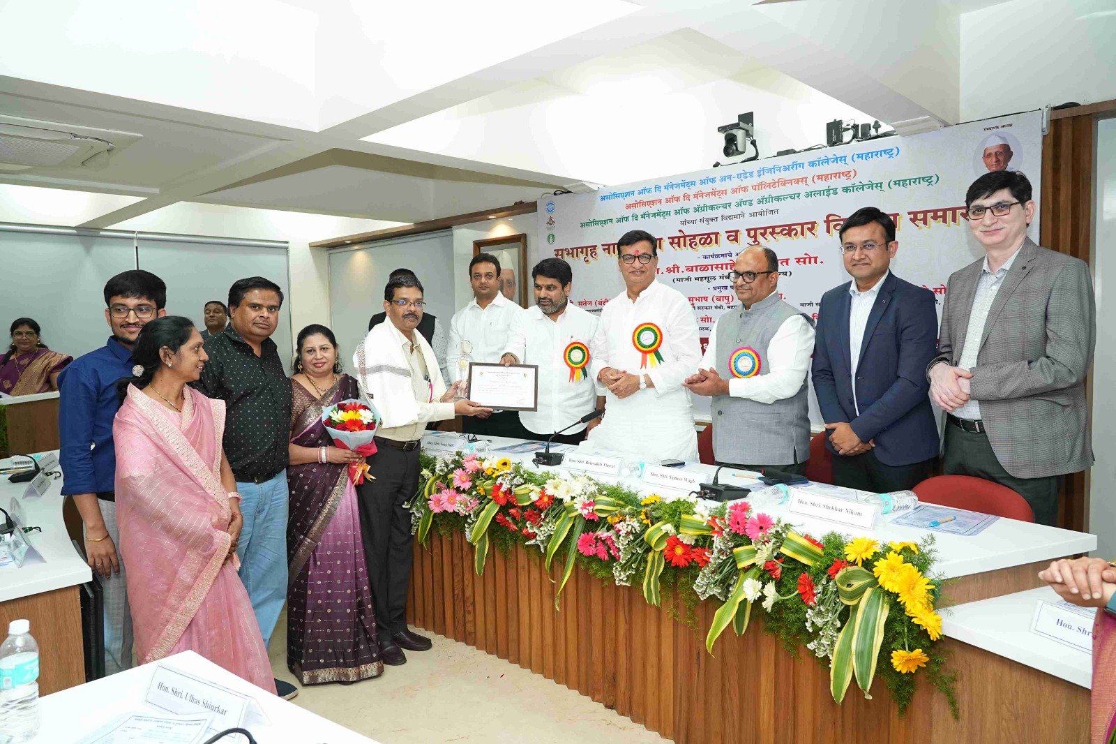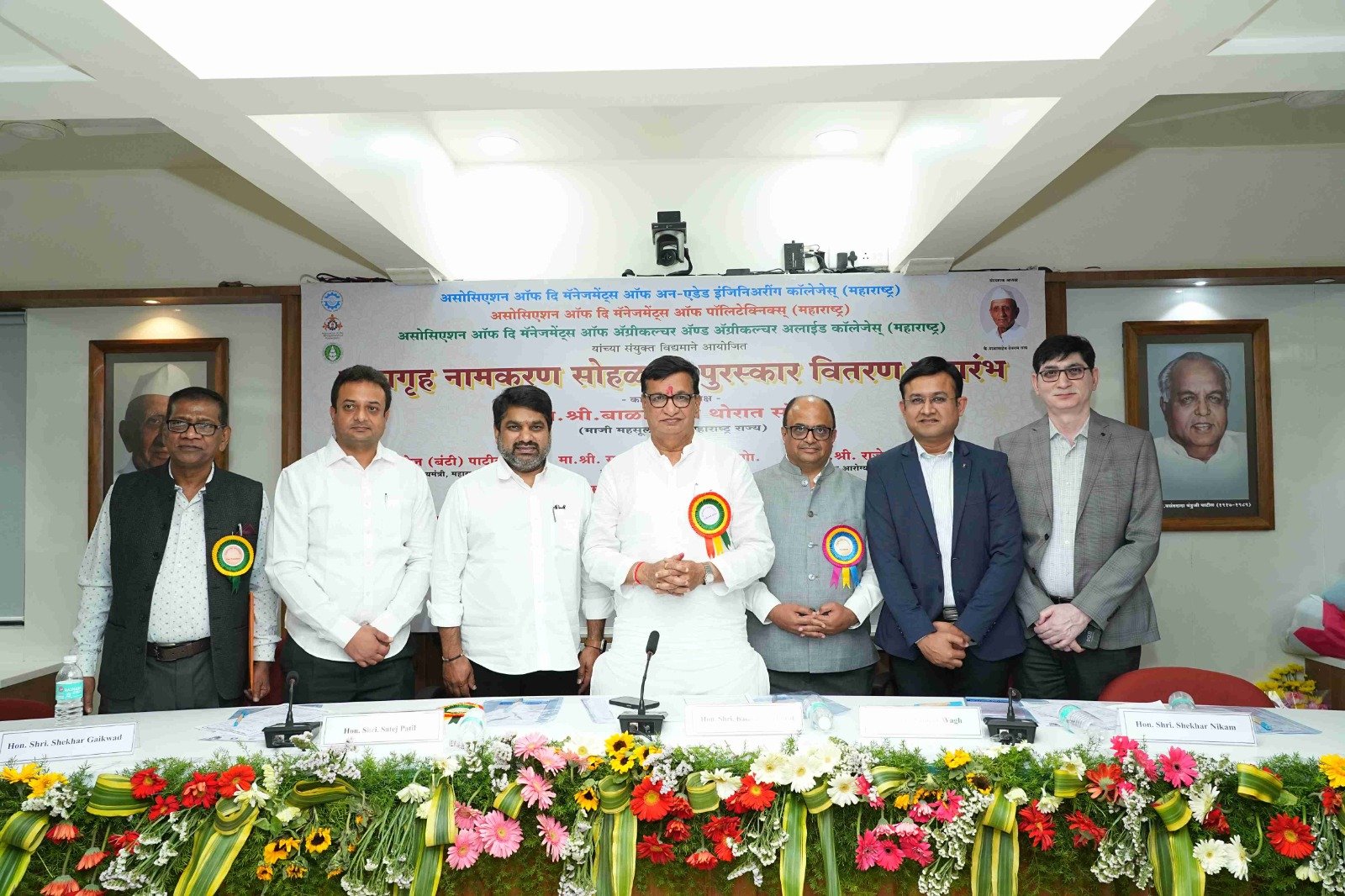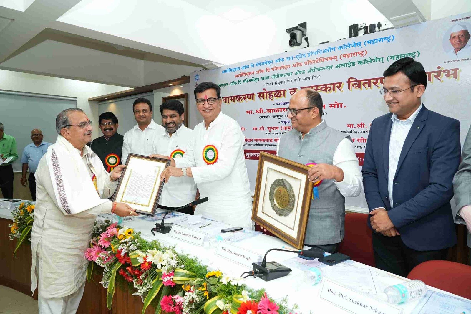 On behalf of the Engineering Association, 'Hon. Balasaheb Wagh (Bhau) Memorial Life Time Achievement Award' was awarded to Trustees of Jaywant Shikshan Prasarak Mandal, Pune Hon. Dr. Pramod Pandurang Vitkar by the auspicious hands of former revenue minister of Maharashtra state Hon. Mr. Balasaheb Thorat in presence of the former Minister of State for Home Affairs of Maharashtra State Hon. Mr. Satej (Bunty) Patil, President of the Association. Mr. Sameer Balasaheb Wagh and other dignitaries