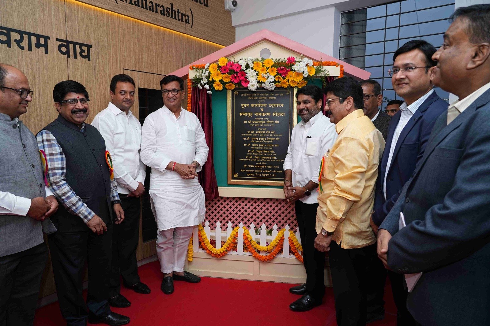 While inaugurating the Auditorium of the association, the former revenue minister of Maharashtra state Hon. Mr. Balasaheb Thorat, the former Minister of State for Home Affairs of the State of Maharashtra Mr. Satej (Bunty) Patil, Chiplun Constituency MLA Hon. Mr. Shekhar Nikam, President of the Association Hon. Mr. Sameer Balasaheb Wagh and other officials.
